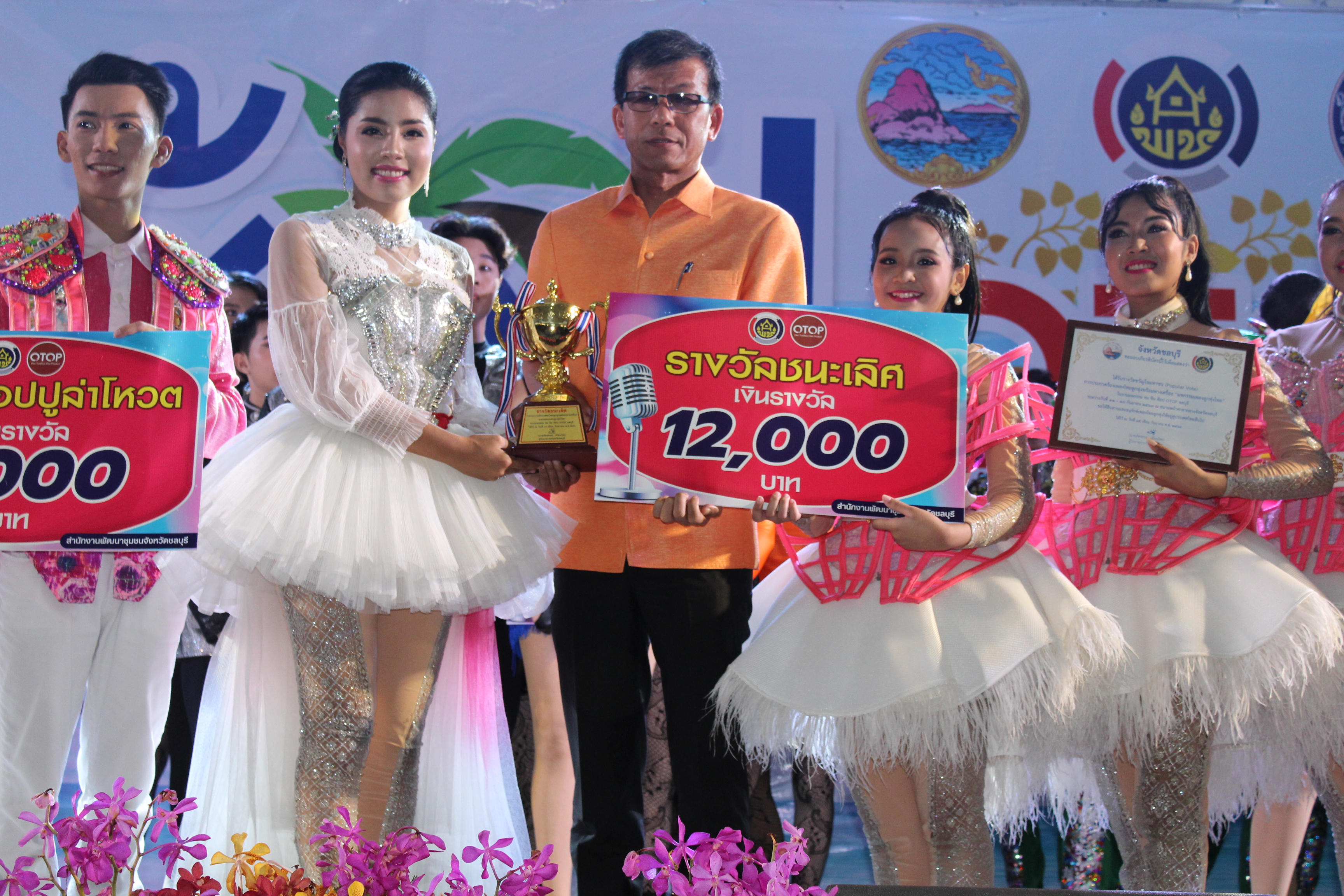 ? วันที่ 15 กันยายน 2563 เวลา 17.00 น. นายบรรเทา ดวงนภา พัฒนาการจังหวัดชลบุรี เป็นประธานในพิธีมอบรางวัลการประกวดร้องเพลงไทยลูกทุ่งพร้อมหางเครื่อง ชิงถ้วยรางวัล นายภัครธรณ์ เทียนไชย ผู้ว่าราชการจังหวัดชลบุรี ในงาน “มหกรรม ชม ชิม ช้อป OTOP ชลบุรี” ณ บริเวณสนามหน้าศาลากลางจังหวัดชลบุรี ในรอบชิงชนะเลิศ สำหรับผลการตัดสินทีมที่ได้รับรางวัลมีดังนี้