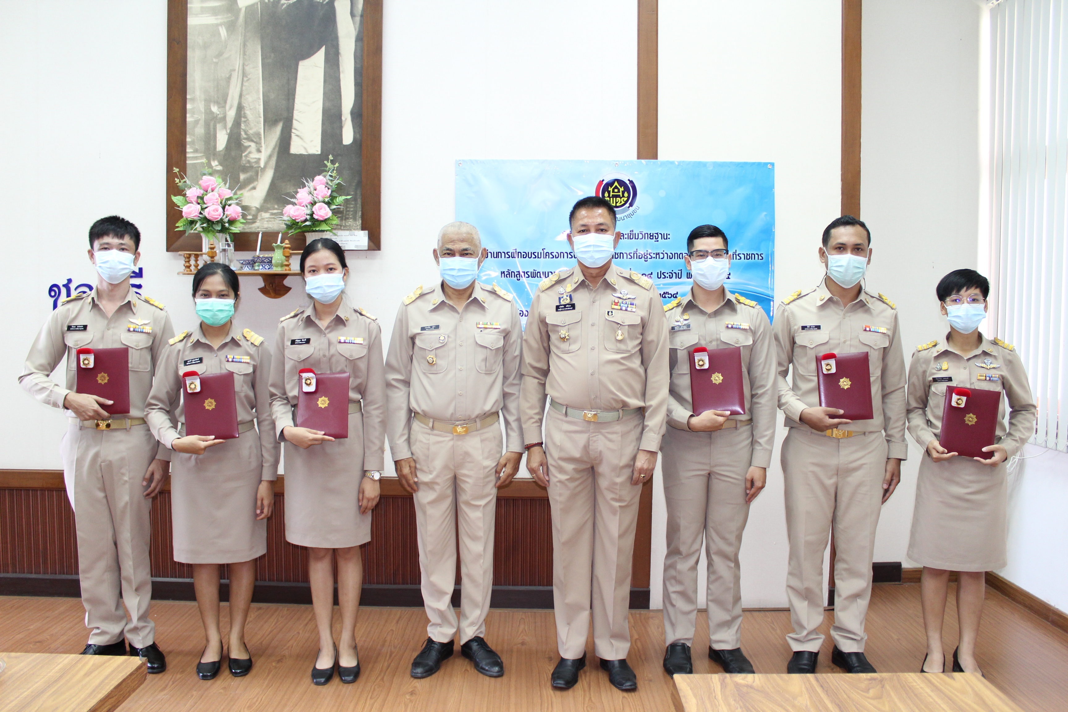 วันที่ 31 พฤษภาคม 2564 เวลา 09.00 น. นายธวัชชัย ศรีทอง รองผู้ว่าราชการจังหวัดชลบุรี เป็นประธานพิธีมอบวุฒิบัตรและเข็มวิทยฐานะพร้อมมอบโอวาทแก่ผู้ผ่านการฝึกอบรมโครงการพัฒนาข้าราชการที่อยู่ระหว่างทดลองปฏิบัติหน้าที่ราชการ หลักสูตรพัฒนากรก่อนประจำการ รุ่นที่ 114 ของจังหวัดชลบุรี จำนวน 6 ราย เพื่อเป็นการสร้างขวัญกำลังใจและความภาคภูมิใจให้แก่ข้าราชการที่ผ่านการฝึกอบรมในครั้งนี้ โดยมี นายประเมิน อุมา พัฒนาการจังหวัดชลบุรี กล่าวรายงาน สำหรับการฝึกอบรมโครงการดังกล่าว กรมการพัฒนาชุมชนได้ดำเนินการในระหว่างวันที่ 31 มกราคม – 1 มีนาคม 2564 ในรูปแบบออนไลน์ผ่าน ZOOM Meeting และฝึกปฏิบัติงานภาคสนาม ณ จังหวัดต้นสังกัด โดยมีวัตถุประสงค์เพื่อให้ผู้อบรมมีความรู้ ความเข้าใจ ในบทบาทหน้าที่ มีอุดมการณ์ ยึดปรัชญา หลักการ และกระบวนการพัฒนาชุมชนเป็นแนวทางในการปฏิบัติงาน มีทัศนคติที่ดี และมีพฤติกรรมที่เหมาะสมในการทำงานกับชุมชน ในโอกาสนี้ นายประเมิน อุมา พัฒนาการจังหวัดชลบุรี ได้มอบโอวาทและแนวทางการปฏิบัติราชการพร้อมทั้งการขับเคลื่อนงานพัฒนาชุมชนในพื้นที่ให้กับผู้ผ่านการฝึกอบรมด้วย