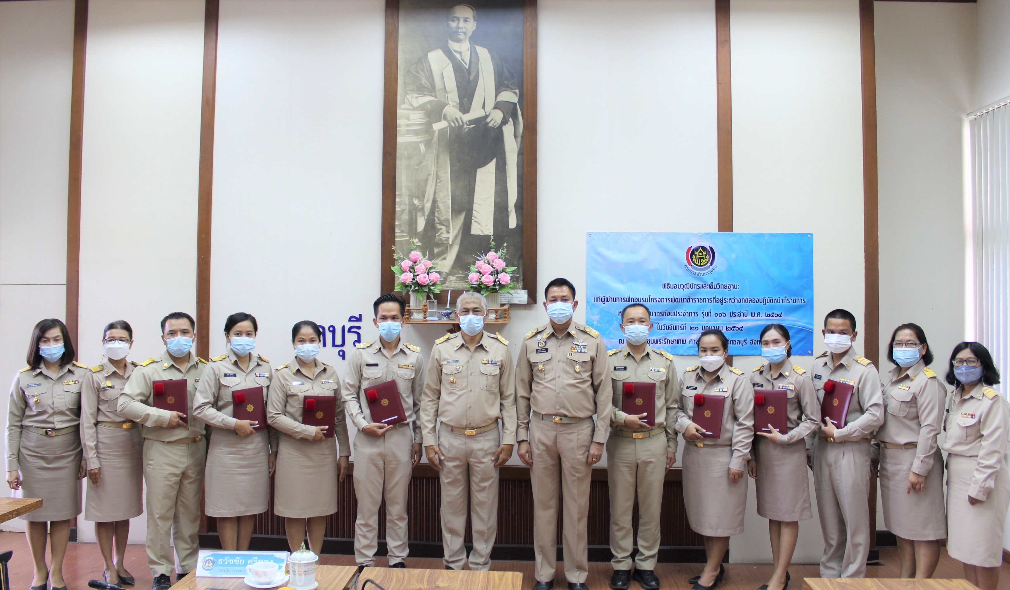 วันที่ 21 มิถุนายน 2564 เวลา 09.30 น. นายธวัชชัย ศรีทอง รองผู้ว่าราชการจังหวัดชลบุรี เป็นประธานพิธีมอบวุฒิบัตรและเข็มวิทยฐานะพร้อมมอบโอวาทแก่ผู้ผ่านการฝึกอบรมโครงการพัฒนาข้าราชการที่อยู่ระหว่างทดลองปฏิบัติหน้าที่ราชการ หลักสูตรพัฒนากรก่อนประจำการ รุ่นที่ 116 ของจังหวัดชลบุรี จำนวน 8 ราย เพื่อเป็นการสร้างขวัญกำลังใจและความภาคภูมิใจให้แก่ข้าราชการที่ผ่านการฝึกอบรมในครั้งนี้ โดยมี นายประเมิน อุมา พัฒนาการจังหวัดชลบุรี กล่าวรายงาน สำหรับการฝึกอบรมโครงการดังกล่าว กรมการพัฒนาชุมชนได้ดำเนินการในระหว่างวันที่ 1 เมษายน – 30 พฤษภาคม 2564 รวมระยะเวลา 60 วัน ประกอบด้วย ภาควิชาการ จำนวน 18 วัน ณ ศูนย์ศึกษาและพัฒนาชุมชนนครนายก ฝึกภาคสนาม จำนวน 37 วัน ณ สำนักงานพัฒนาชุมชนอำเภอและหมู่บ้านเรียนรู้ในพื้นที่ต้นสังกัด และภาคสรุป จำนวน 5 วัน ผ่านระบบออนไลน์ ZOOM Meeting โดยมีวัตถุประสงค์เพื่อให้ผู้อบรมมีความรู้ ความเข้าใจ ในบทบาทหน้าที่ มีอุดมการณ์ ยึดปรัชญา หลักการ และกระบวนการพัฒนาชุมชนเป็นแนวทางในการปฏิบัติงาน มีทัศนคติที่ดี และมีพฤติกรรมที่เหมาะสมในการทำงานกับชุมชน ในโอกาสนี้ นายประเมิน อุมา พัฒนาการจังหวัดชลบุรี ได้มอบนโยบายและแนวทางการขับเคลื่อนงานพัฒนาชุมชนในพื้นที่ให้กับผู้ผ่านการฝึกอบรมด้วย