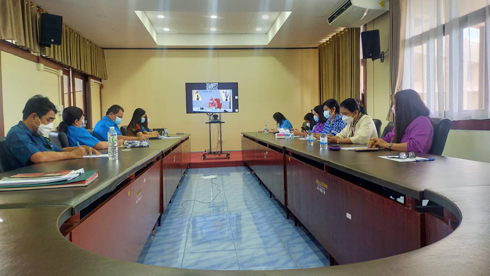 วันที่ 18 พฤศจิกายน 2564 เวลา 09.00 น. นายสุรศักดิ์ อักษรกุล รองอธิบดีกรมการพัฒนาชุมชน เป็นประธานการประชุมการขับเคลื่อนงานเศรษฐกิจฐานรากด้วยกองทุนชุมชน ประจำปีงบประมาณ พ.ศ. 2565 ผ่านระบบการประชุมทางไกล (Video Conferrence) ถ่ายทอดสัญญาณจากห้องประชุมศูนย์ข้อมูลกลางเพื่อการตัดสินใจ (War Room) กรมการพัฒนาชุมชน ในการนี้ นายประเมิน อุมา พัฒนาการจังหวัดชลบุรี มอบหมายให้ นางสาวอุไร บรรเทิงสุข ผู้อำนวยการกลุ่มงานยุทธศาสตร์การพัฒนาชุมชน พร้อมด้วย ผู้อำนวยการกลุ่มงาน พัฒนาการอำเภอทุกอำเภอ และนักวิชาการพัฒนาชุมชนจังหวัดที่รับผิดชอบ เข้าร่วมการประชุมเพื่อรับทราบนโยบายและแนวทางการขับเคลื่อนงานเศรษฐกิจฐานรากด้วยกองทุนชุมชน ประจำปีงบประมาณ พ.ศ. 2565 ณ ห้องประชุมชั้น 2 อาคารอำนวยการ ศูนย์ศึกษาและพัฒนาชุมชนชลบุรี อำเภอเมืองชลบุรี จังหวัดชลบุรี