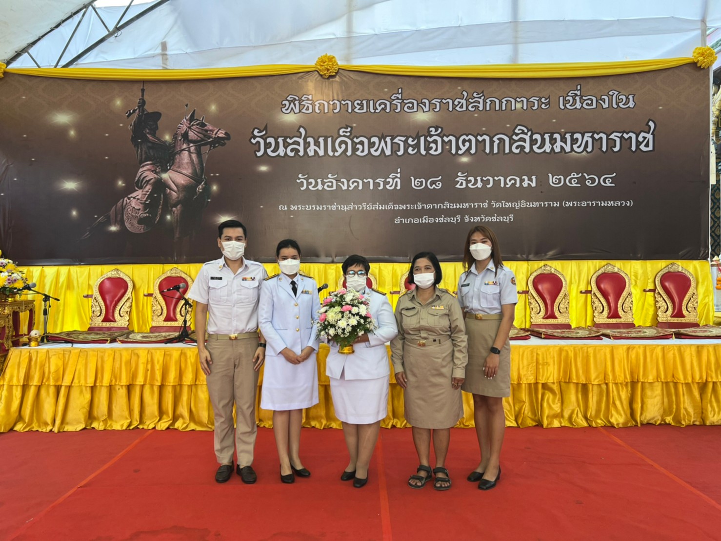 วันที่ 28 ธันวาคม 2564 เวลา 07.00 น. นายประเมิน อุมา พัฒนาการจังหวัดชลบุรี มอบหมายให้ นางรชยา โพธิสิน นักวิชาการพัฒนาชุมชนชำนาญการ พร้อมด้วย ข้าราชการ พนักงานราชการ และลูกจ้าง สำนักงานพัฒนาชุมชนจังหวัดชลบุรี เข้าร่วมพิธีถวายเครื่องราชสักการะ เนื่องในวันสมเด็จพระเจ้าตากสินมหาราช ณ พระบรมราชานุสาวรีย์สมเด็จพระเจ้าตากสินมหาราช วัดใหญ่อินทาราม (พระอารามหลวง) อำเภอเมืองชลบุรี จังหวัดชลบุรี