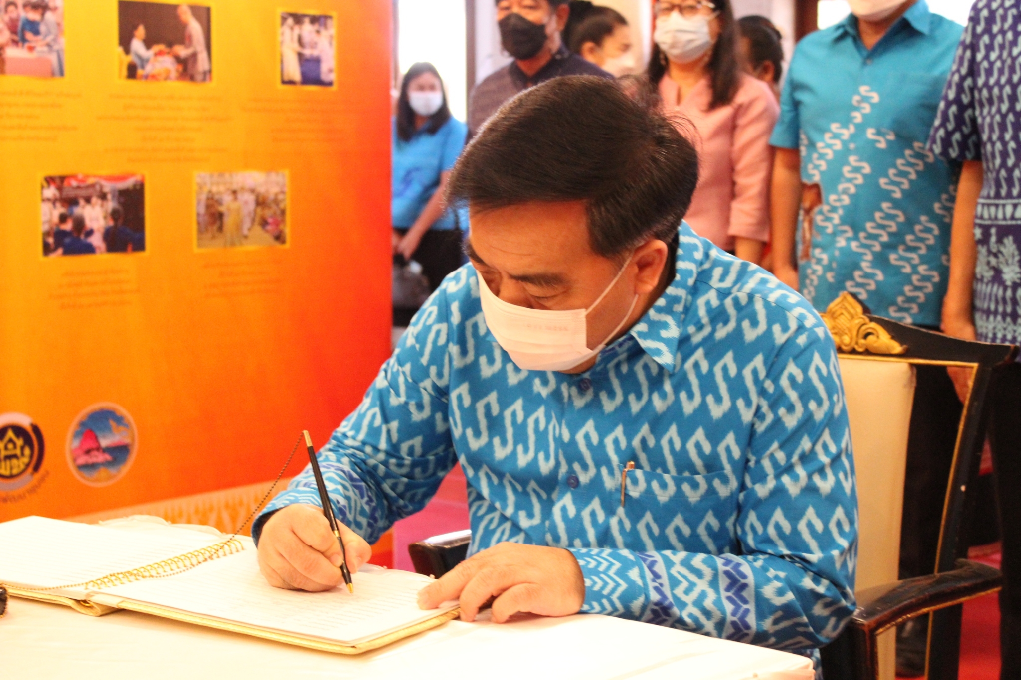 วันที่ 14 มกราคม 2565 เวลา 11.30 น. นายนิติ วิวัฒน์วานิช รองผู้ว่าราชการจังหวัดชลบุรี นำคณะข้าราชการ พนักงานราชการ ลูกจ้าง สังกัดสำนักงานพัฒนาชุมชนจังหวัดชลบุรี และสำนักงานพัฒนาชุมชนอำเภอทุกอำเภอ ร่วมลงนามถวายพระพร สมเด็จพระเจ้าลูกเธอ เจ้าฟ้าสิริวัณณวรี นารีรัตนราชกัญญา เนื่องในโอกาสวันคล้ายวันประสูติ 8 มกราคม 2565 พร้อมชมนิทรรศการลายผ้าพระราชทาน “ผ้าลายขอเจ้าฟ้าสิริวัณณวรีฯ” ณ บริเวณห้องโถง ชั้น 1 ศาลากลางจังหวัดชลบุรี