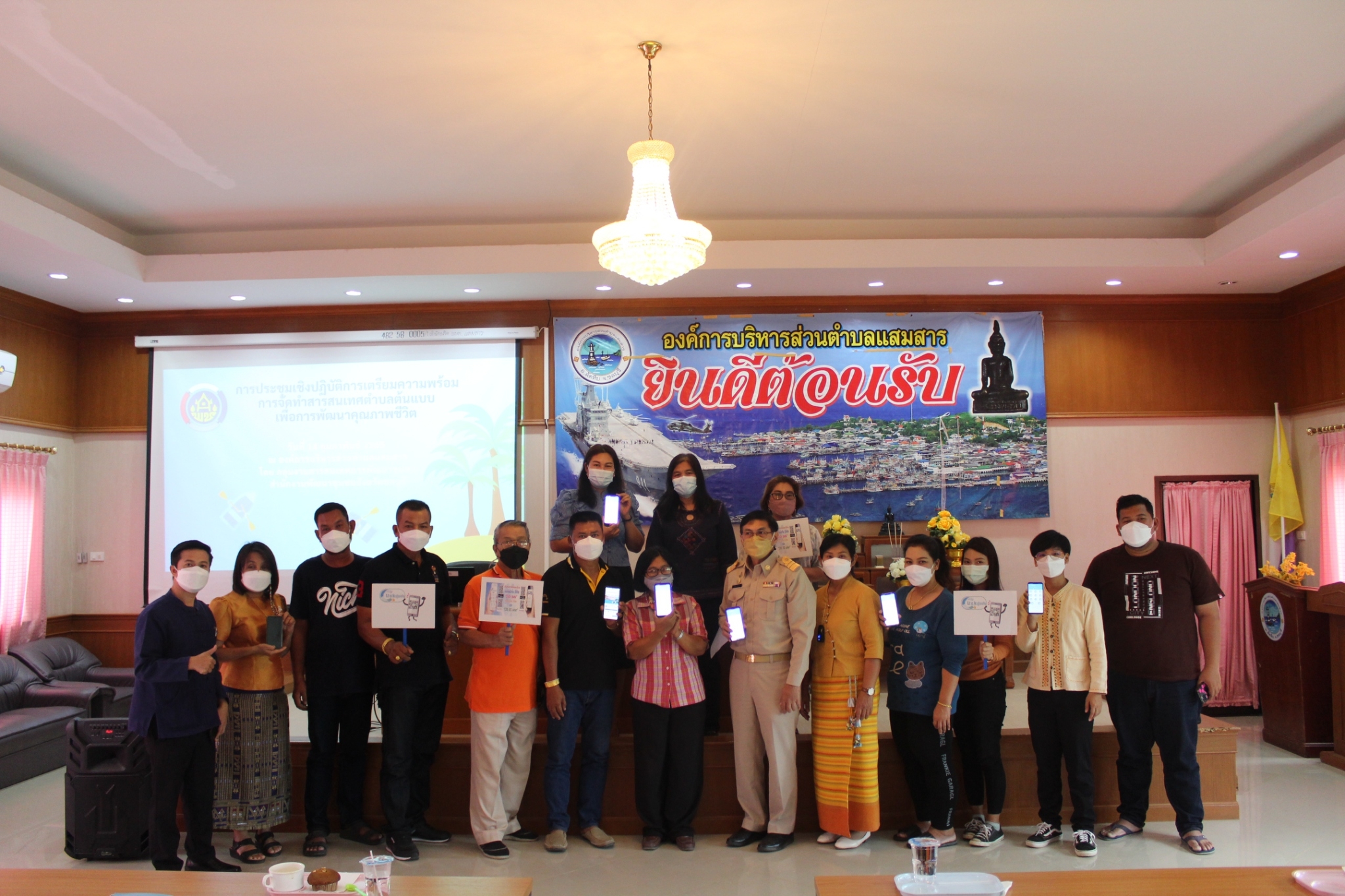 วันที่ 14 กุมภาพันธ์ 2565 สำนักงานพัฒนาชุมชนจังหวัดชลบุรี ร่วมกับสำนักงานพัฒนาชุมชนอำเภอสัตหีบ และองค์การบริหารส่วนตำบลแสมสาร อำเภอสัตหีบ จัดประชุมเตรียมความพร้อมการจัดทำสารสนเทศตำบลต้นแบบเพื่อพัฒนาคุณภาพชีวิต ตำบลแสมสาร อำเภอสัตหีบ จังหวัดชลบุรี โดยมี นายอดุลย์ รักษ์สกุลสงสัย นายกองค์การบริหารส่วนตำบลแสมสารให้เกียรติเป็นประธานเปิดการประชุมและกล่าวพบปะผู้เข้าร่วมประชุม ณ ห้องประชุมองค์การบริหารส่วนตำบลแสมสาร อำเภอสัตหีบ จังหวัดชลบุรี กลุ่มเป้าหมายได้แก่ ผู้นำชุมชน กลุ่ม องค์กร ของตำบลแสมสาร ในการนี้ นางกัญญา ประเสริฐวิบูลย์ ผู้อำนวยการกลุ่มงานสารสนเทศการพัฒนาชุมชน นางไพเราะ ภัทรธรรมกุล นักวิชาการพัฒนาชุมชนชำนาญการ นายธนภัทร เป้งทอง นักวิชาการพัฒนาชุมชนชำนาญการ และนายภาคภูมิ มณีโชติ นักพัฒนาชุมชน ร่วมเป็นวิทยากรบรรยายให้ความรู้แก่ผู้เข้าร่วมประชุม พร้อมนี้ นางจุฑารัตน์ ชุนเกาะ พัฒนาการอำเภอสัตหีบ พร้อมด้วยเจ้าหน้าที่พัฒนาชุมชนอำเภอสัตหีบทุกคนได้เข้าร่วมการประชุมดังกล่าวด้วย