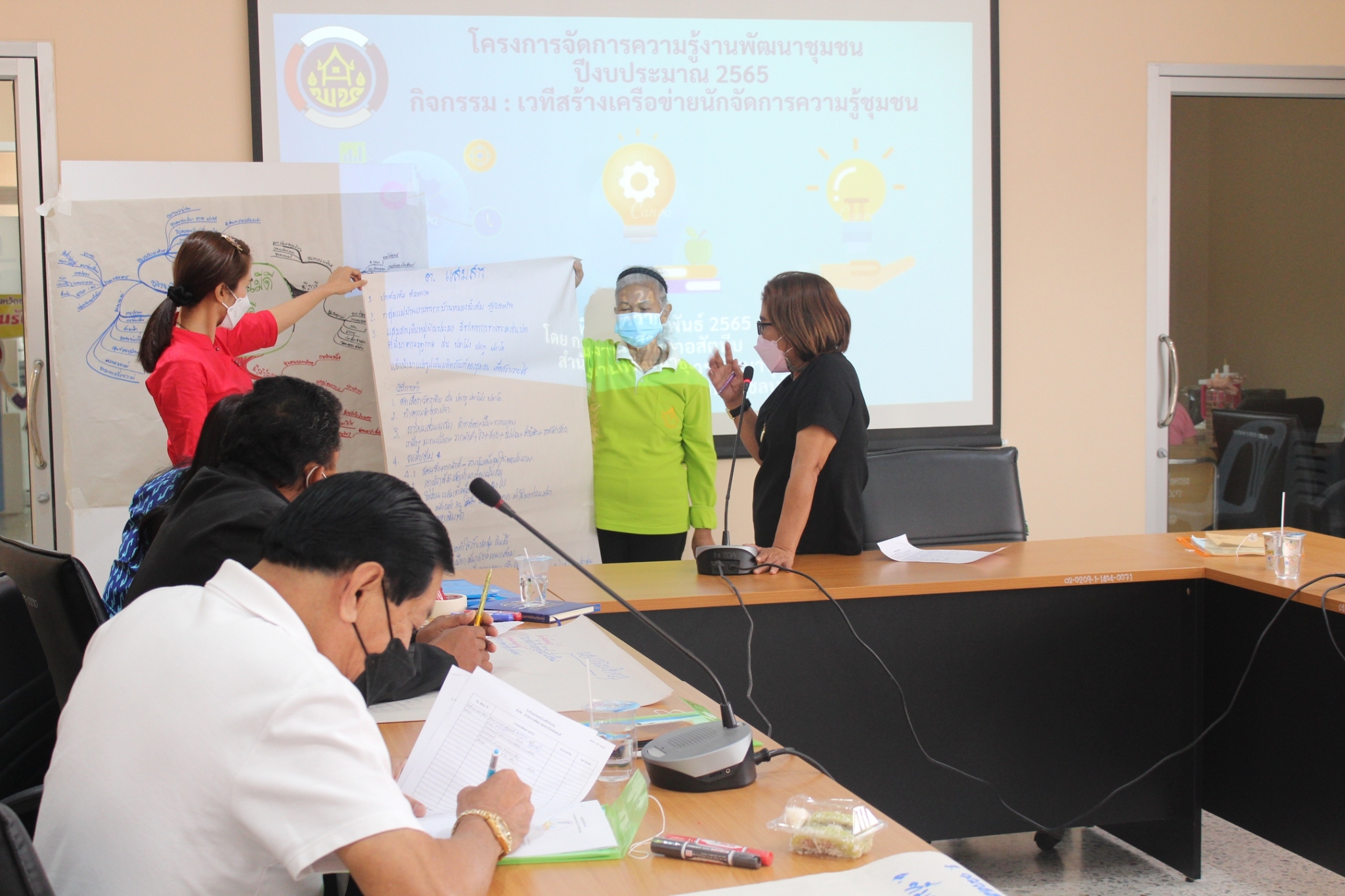วันที่ 24 กุมภาพันธ์ 2565 สำนักงานพัฒนาชุมชนจังหวัดชลบุรีดำเนินงานโครงการจัดการความรู้งานพัฒนาชุมชน ปีงบประมาณ พ.ศ. 2565 ณ ห้องประชุมที่ว่าการอำเภอสัตหีบ ชั้น 3 อำเภอสัตหีบ จังหวัดชลบุรี โดยมี นางกัญญา ประเสริฐวิบูลย์ ผู้อำนวยการกลุ่มงานสารสนเทศการพัฒนาชุมชน เป็นประธานเปิดโครงการ และ นางสาวดวงพร เลิศลำหวาน นักทรัพยากรบุคคลชำนาญการ พร้อมด้วยนางสาวเมธินี วงศ์สถิตย์ นักจัดการงานทั่วไปปฏิบัติการ เป็นวิทยากรบรรยายให้ความรู้ กลุ่มเป้าหมายได้แก่ เจ้าหน้าที่พัฒนาชุมชน ผู้นำชุมชน ปราชญ์ชุมชน จำนวน 10 คน มีวัตถุประสงค์เพื่อส่งเสริมบุคลากรในการเป็นนักจัดการความรู้ในงานพัฒนาชุมชนมืออาชีพ สร้างเครือข่ายนักจัดการความรู้งานพัฒนาชุมชน และส่งเสริมให้เกิดกระบวนการจัดการความรู้และจัดเก็บองค์ความรู้ระดับพื้นที่