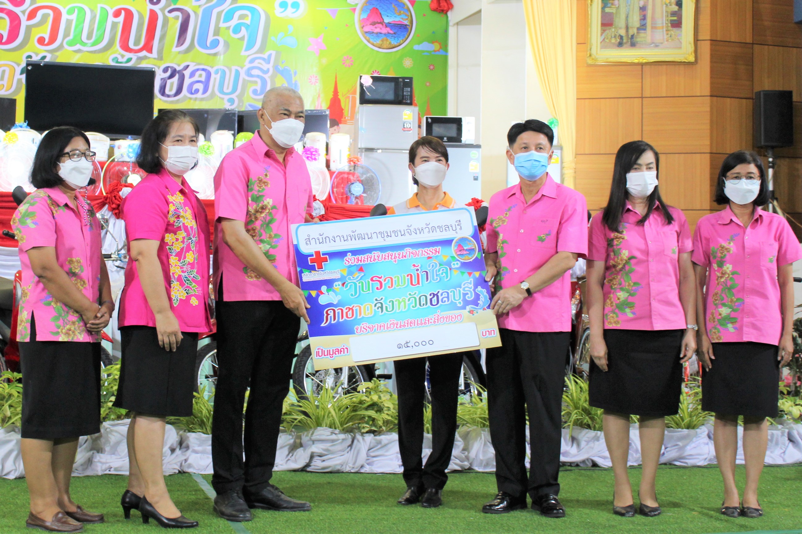 เหล่ากาชาดจังหวัดชลบุรี ได้จัดให้มีการออกร้าน “มัจฉากาชาด” จังหวัดชลบุรี ขึ้น โดยมีวัตถุประสงค์เพื่อจัดหารายได้ไว้สำหรับดำเนินกิจกรรมสาธารณกุศลตามวัตถุประสงค์การดำเนินงานของเหล่ากาชาดจังหวัด และตามภารกิจของสภากาชาดไทย โดยขอรับบริจาคเงินและสิ่งของจากส่วนราชการ รัฐวิสาหกิจ หน่วยงาน บริษัท ห้างร้าน องค์กรต่าง ๆ และผู้มีจิตกุศล ในการนี้ นายประเมิน อุมา พัฒนาการจังหวัดชลบุรี พร้อมด้วย ผู้อำนวยการกลุ่มงาน ร่วมมอบเงินบริจาคของสำนักงานพัฒนาชุมชนจังหวัดชลบุรีสำหรับการออกร้าน “มัจฉากาชาด” จังหวัดชลบุรี ในครั้งนี้เป็นเงินจำนวน 15,000 บาท