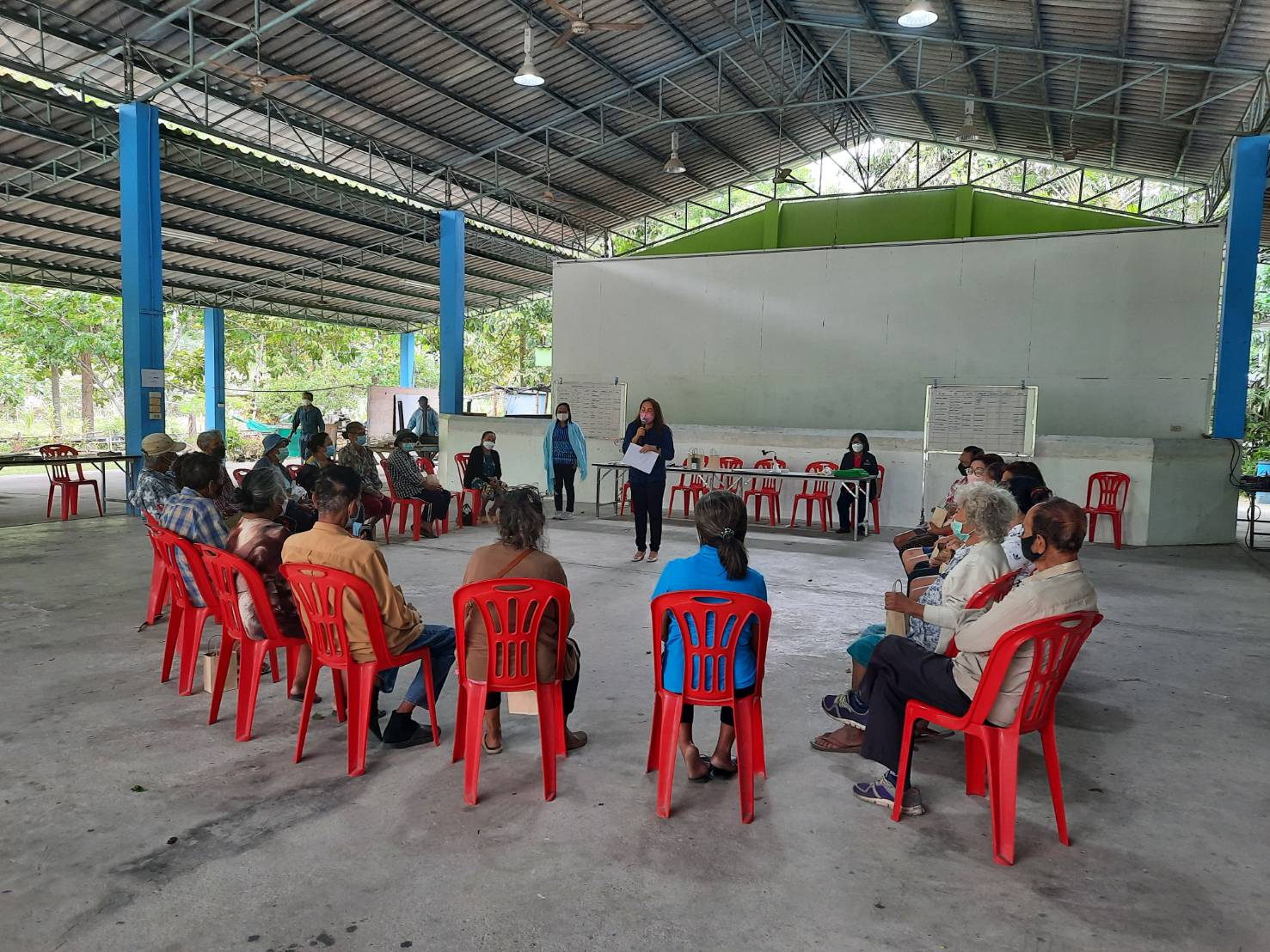 วันที่ 3 พฤษภาคม 2565 นายประเมิน อุมา พัฒนาการจังหวัดชลบุรี มอบหมายให้ นางกัญญา ประเสริฐวิบูลย์ ผู้อำนวยการกลุ่มงานสารสนเทศการพัฒนาชุมชน พร้อมด้วย นายธนภัทร เป้งทอง นักวิชาการพัฒนาชุมชนชำนาญการ เข้าร่วมโครงการสร้างทีมนวัตกรรมภาครัฐในการพัฒนาคุณภาพชีวิตของประชาชน (Government Innovation Lab : Gov Lab) กิจกรรมที่ 5 สร้างและพัฒนานวัตกรรมเชิงพื้นที่ ร่วมกับทีมนวัตกรของศูนย์ศึกษาและพัฒนาชุมชนชลบุรี และสำนักงานพัฒนาชุมชนอำเภอศรีราชา ณ ศาลาประชาคม บ้านโค้งดารา หมู่ที่ 6 ตำบลหนองขาม อำเภอศรีราชา จังหวัดชลบุรี โดยมีกลุ่มเป้าหมาย ได้แก่ ผู้สูงอายุที่มีบัตรสวัสดิการแห่งรัฐ ของบ้านโค้งดารา จำนวน 30 คน เพื่อร่วมกันวิเคราะห์ สังเคราะห์ และออกแบบนวัตกรรมเชิงพื้นที่ในการพัฒนาคุณภาพชีวิตของผู้สูงอายุในพื้นที่