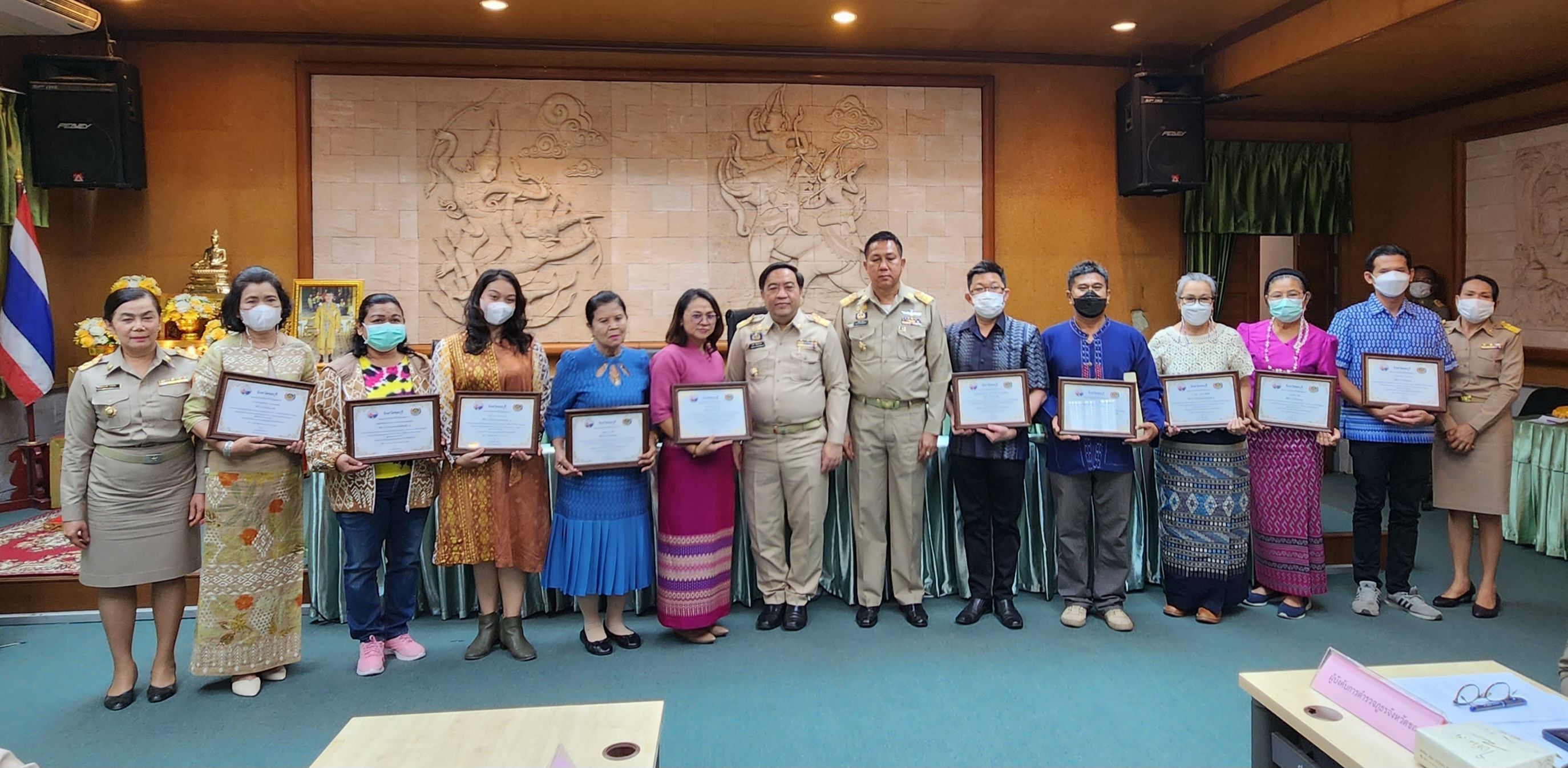 ☀️วันจันทร์ที่ 27 กุมภาพันธ์ 2566 เวลา 09.30 น. ณ ห้องประชุมชลบุรี ศาลากลางจังหวัดชลบุรี นายธวัชชัย ศรีทอง ผู้ว่าราชการจังหวัดชลบุรี เป็นประธานประชุมฯ พร้อมให้เกียรติมอบรางวัลแก่ผู้ที่ชนะการประกวดออกแบบผลิตภัณฑ์ที่ประยุกต์จากแบบลายผ้าพระราชทาน “ผ้าขิตลายนารีรัตนราชกัญญา” จำนวน 10 ราย ดังนี้