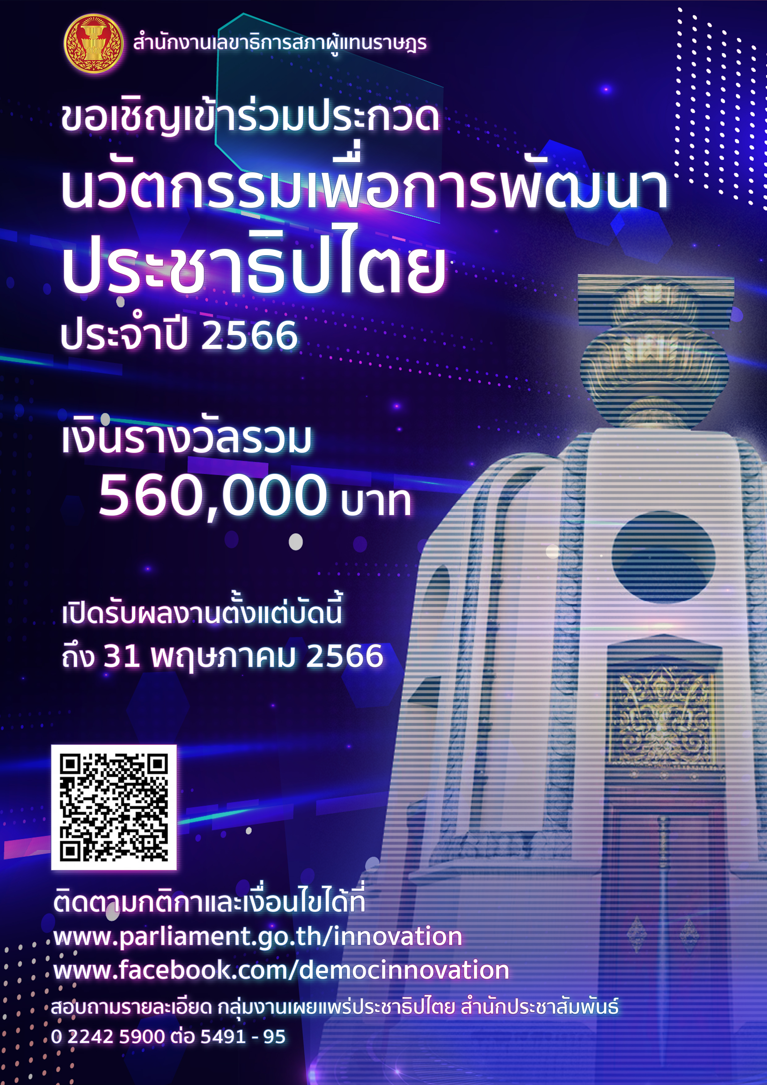 เชิญชวนเข้าร่วม #ประกวด #นวัตกรรมเพื่อการพัฒนาประชาธิปไตย ประจำปี 2566 ? เงินรางวัลรวมกว่า 560,000 บาท