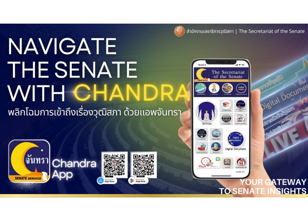 สำนักงานเลขาวุฒิสภา ได้จัดทำแอปพลิเคชันจันทรา โดยมีมีวัตถุประสงค์ เพื่อเป็นช่องทางในการบริการสืบค้นข้อมูลด้านนิติบัญญัติของวุฒิสภาได้อย่างสะดวกรวดเร็ว ให้แก่ประชาชน อาทิ