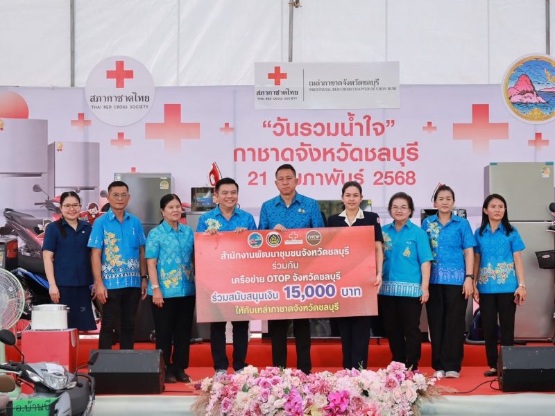 พช.ชลบุรี ร่วมงานวันรวมน้ำใจกาชาดจังหวัดชลบุรี รับบริจาคสิ่งของและเงินสนับสนุนกิจกรรมออกร้านมัจฉากาชาด จังหวัดชลบุรี ประจำปี 2568