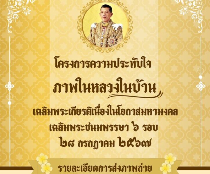 เชิญชวนประชาชนร่วมส่งภาพถ่ายความประทับใจ ภาพพระบาทสมเด็จพระเจ้าอยู่หัว ณ อาคารบ้านเรือนของตนเอง ในโครงการความประทับใจ ภาพในหลวงในบ้านเฉลิมพระเกียรติเนื่องในโอกาสมหามงคลเฉลิมพระชนมพรรษา 6 รอบ 28 กรกฎาคม 2567
