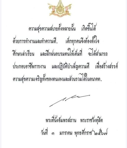 ‘ในหลวง’ พระราชทานพระบรมราโชวาท ลงพิมพ์ในหนังสือวันเด็กแห่งชาติ ๒๕๖๗