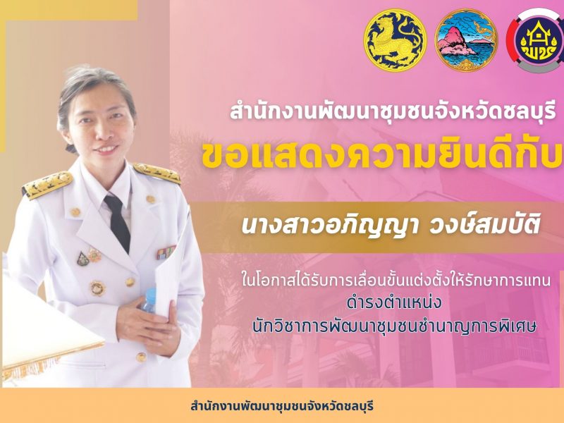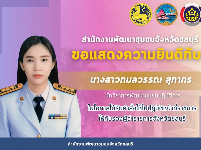 สำนักงานพัฒนาชุมชนจังหวัดชลบุรี 🎉 ขอแสดงความยินดี 🎉 กับนางสาวกมลวรรณ สุภากร